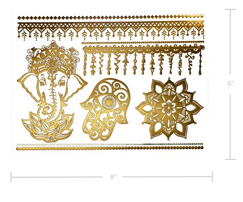 6 x 8 inches 6 x sheets of the latest boho henna metallic tattoos. 4.7 out of 5 stars. This listing is for one high quality bohemian gold henna temporary tattoo. Valentines day gift tattoosbyfrenzyflare 5 out of 5 stars (1,699) $ 14.00 free shipping add to favorites quick view face freckles henna with instructions hennabymady 4.5 out of 5 stars (9) $ 10. This golden henna tattoo is created using gold body paint.